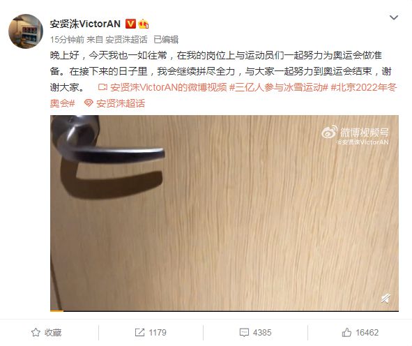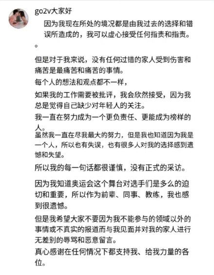 安贤洙写到:晚上好,今天我也一如往常,在我的岗位上与运动员们一起努力为奥运会做准备。在接下来的日子里,我会继续拼尽全力,与大家一起努力到奥运会结束,谢谢大家。